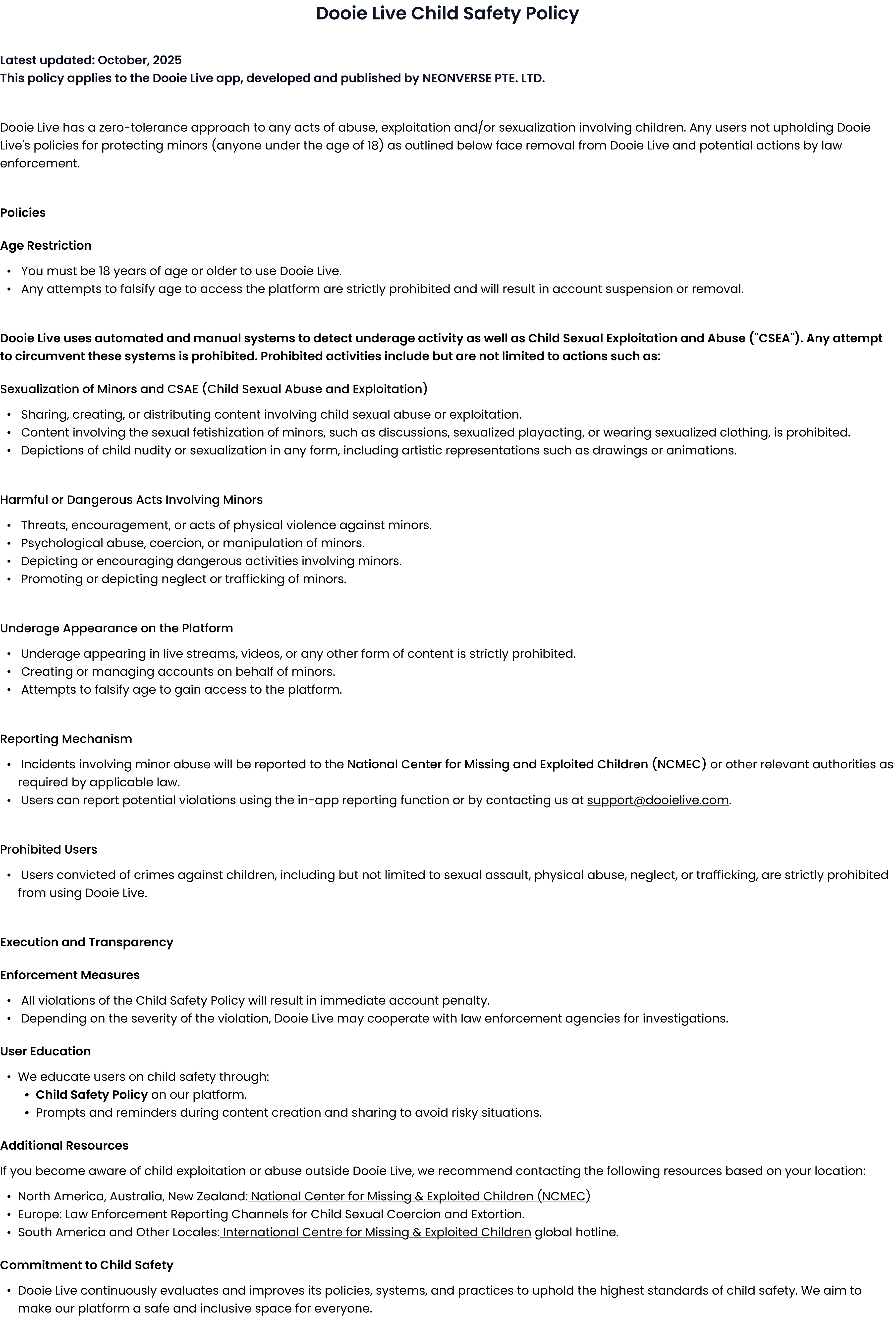 DooieLive reserves the right to suspend or delete accounts that do not meet the age requirements. By using the